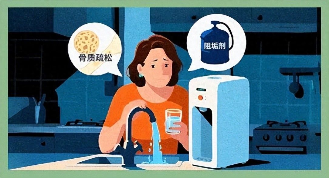 真相:這種說法以偏概全。阻垢劑是反滲透凈水器抑制水垢的化學物質,主要成分為多聚磷酸鹽,低毒且廣泛用于食品、工業領域。磷酸鹽是人體必需礦物質,參與鈣磷代謝,正常攝入不會直接導致骨質疏松。且阻垢劑用量極小,多數隨濃縮水排出,飲用水中磷酸鹽含量遠低于安全上限(我國成人每日磷可耐受最高攝入量為3500 mg,人體90%以上磷攝入來自食物,凈水器飲用水貢獻僅約20mg/日)。